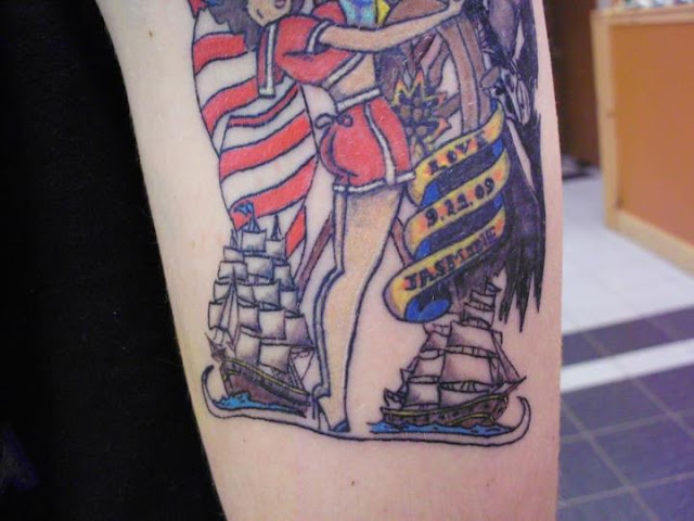 tattoo it was originally black and gray so I added some colors that would work together and made it million times better than what it was I was I had a pic of how it was before.